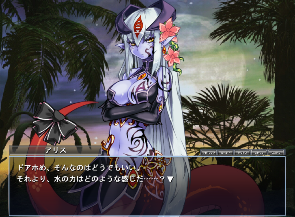 まずはメインヒロインといって良い妖魔のアリスです。本編主人公のルカの旅に同行し、所々で見せる博識さや言動から高位の妖魔であることが分かります。いやまあ公式サイトでもバレてるけど